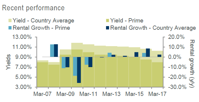Продължава спадът и на свободните офис площи като през първата четвърт на 2017 г. те вече са едва 9.1%. По-малко от половината от тези са в клас А офис сгради. Свободните пространства при офисите от клас А и Б е около 160 500 кв. м. Намаляването на незаетите площи се очаква да продължи, защото нови обекти се планира да се пуснат в експлоатация през втората половина на годината.